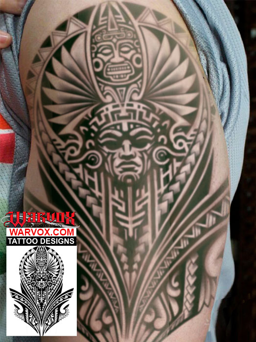 Aztec Tribal Half Sleeve Tattoo Design arm leg back tattoo ideas by warvox drawings