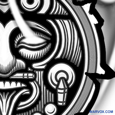 Skeleton Aztec Soldier tattoo design featuring the sun god Tonatiuh is a striking, mythologically rich composition that merges the inevitability of death with the life-giving force of the cosmos. The skeletal warrior stands in full battle regalia—feathers, armor, symbolizing the warrior’s transcendence beyond mortal flesh to serve directly under the supreme solar deity. the face of Tonatiuh emerges from a radiant sun disc, his almond eyes, fanged mouth, and protruding stone tongue demanding sacrificial tribute; spiral smokes outward, intertwining with the soldier’s ribs and spine as if the god’s energy animates the skeleton itself. The design places Tonatiuh in front the warrior, casting divine light that reveals every crack in the bone, while Aztec glyphs